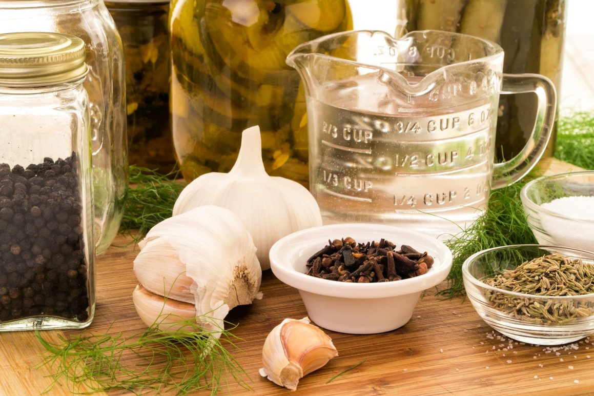 - Sweet pickles are pickled in a solution of vinegar and sugar. Bread and butter pickles are similar but have a vinegar, sugar, and spice pickling solution. They may include mustard seed, celery seed, garlic, onion, and bell pepper.