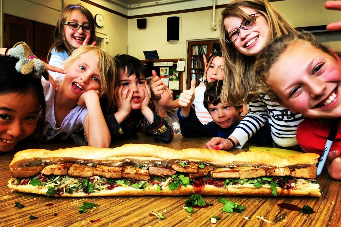 To assemble the "bánh mì," have your kids spread each half of the baguette with 1 to 2 tablespoons of mayonnaise (or to taste) and fill the cavity of the bottom half of the bread with the sautéed tofu, the pickled vegetables, some torn cilantro leaves, and a squeeze of lime juice. Top with the other half of the baguette. Cut the sandwiches into equal parts and eat! "Rất ngon" (Zet nohn) or "Very tasty" in Vietnamese!