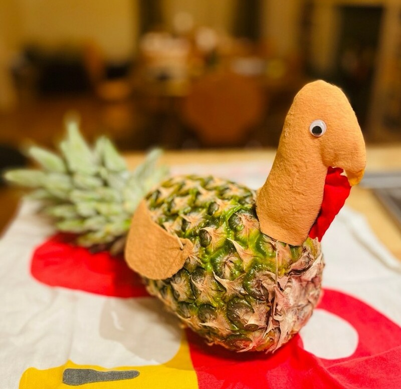 [This “Pineapple turkey,” made by my grandmother, has been a fixture on my family’s Thanksgiving table since the 1970’s! You can learn how to make one here.]