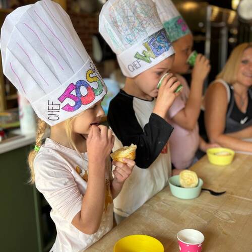 “We made the best pies! We did the cutting and mixing and slamming the dough together and Chef Dylan put them in the mini oven and wham bam they were delicious!” ~ Charlie, 5