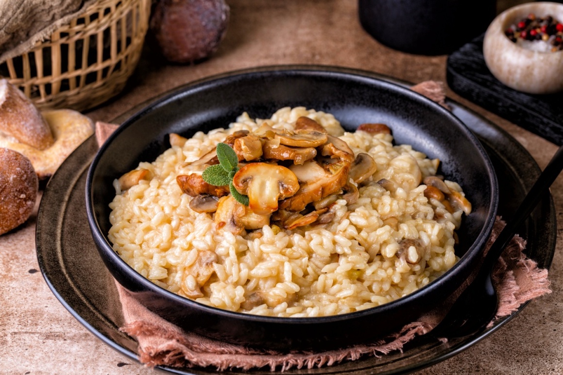- Risotto (Ree-ZOH-toh) is a classic dish from the Lombardy region of northern Italy. Short-grain rice, especially Arborio, which has a high starch content, is slowly cooked in a fish, meat, or vegetable broth until it has a creamy consistency.