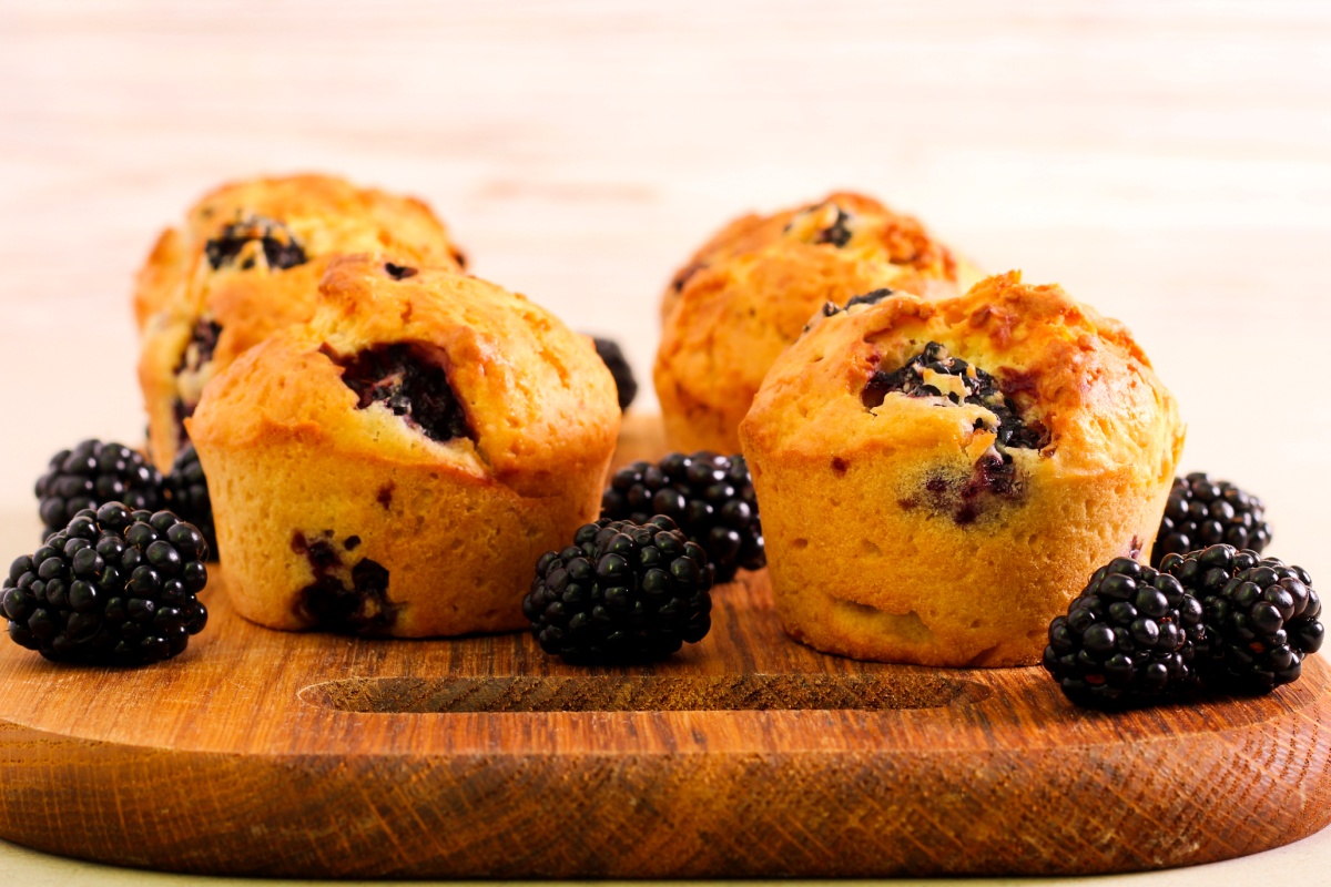 Blackberry corn muffins can be eaten for breakfast, as a side, or as a snack. Slathering on some butter that kids get to make themselves makes these muffins even more special! For even more blackberry goodness, eat them with Berry Yummy Smoothies!