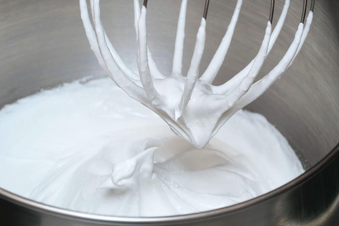 Creating the whipped cream will require friction. Friction is the resistant force that is present when two objects move across each other. In this instance, the cream will be whisked against the walls of the container. This friction causes the cream to become whipped cream. Friction can help to force air into the cream molecule, changing the fat structure of the cream. The fat, or lipid, molecule contains all sorts of fat, water, and a little air, protected by a barrier of triglycerides. When you whisk the cream, the triglyceride barrier breaks down, allowing the contained fat to clump together and appear thicker. You will notice the cream is becoming thicker but not yet whipped cream. Now that the triglyceride barrier is broken down, air can more freely integrate into the cream, and before you know it, the cream will be standing tall because it is full of air bubbles. Now put that cream on some banana pudding and quickly before it deflates.