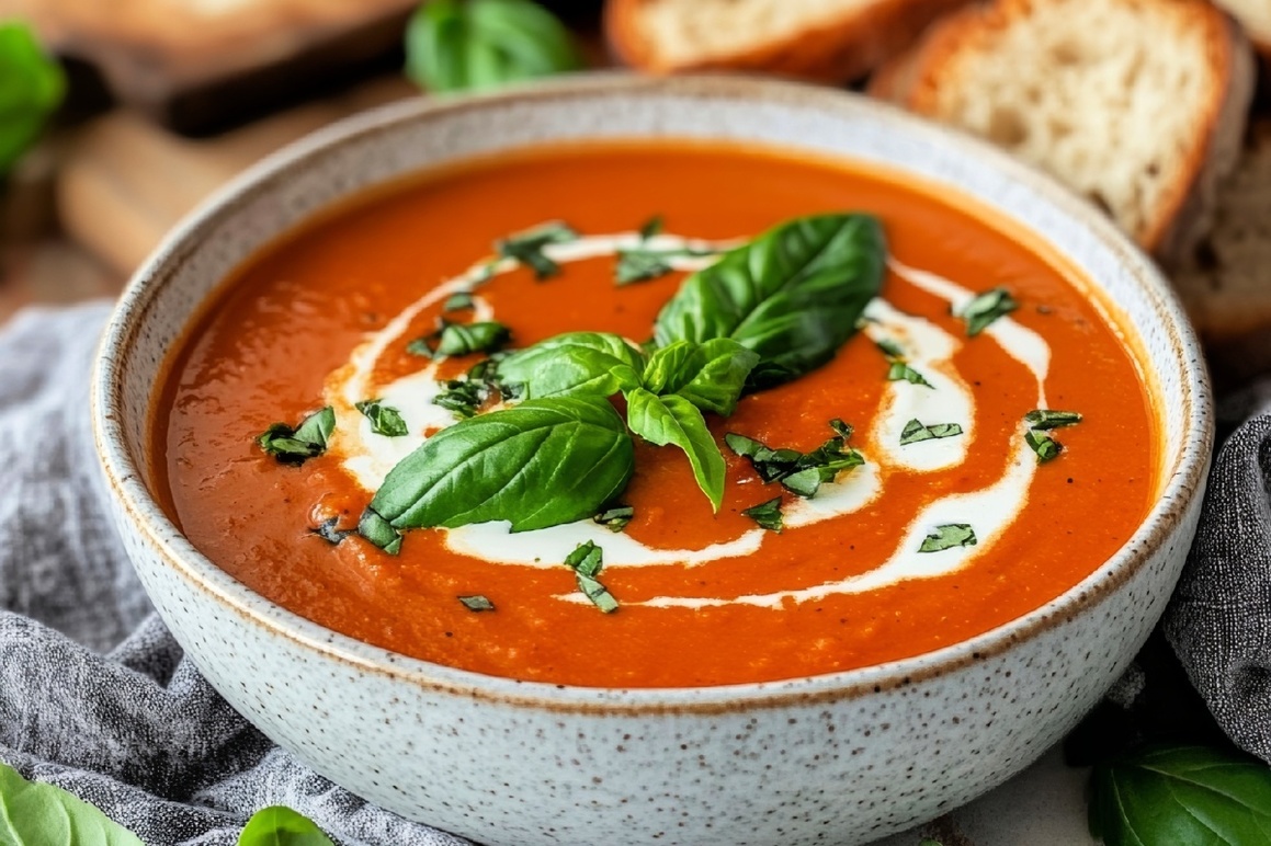 Whether served as a starter or a main course, tomato soup is a timeless classic that always hits the spot. There’s something about the tangy sweetness of tomatoes and the silky richness of the cream that feels like a warm hug.