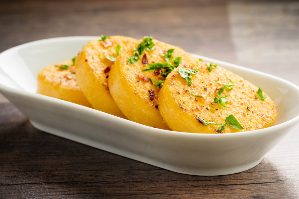 These cheesy, crispy polenta cakes are a delicious accompaniment for stews, meat dishes, roasted or sautéed vegetables, and salads. They also pair well with pasta sauces, like Ava's Chickpea Puttanesca!