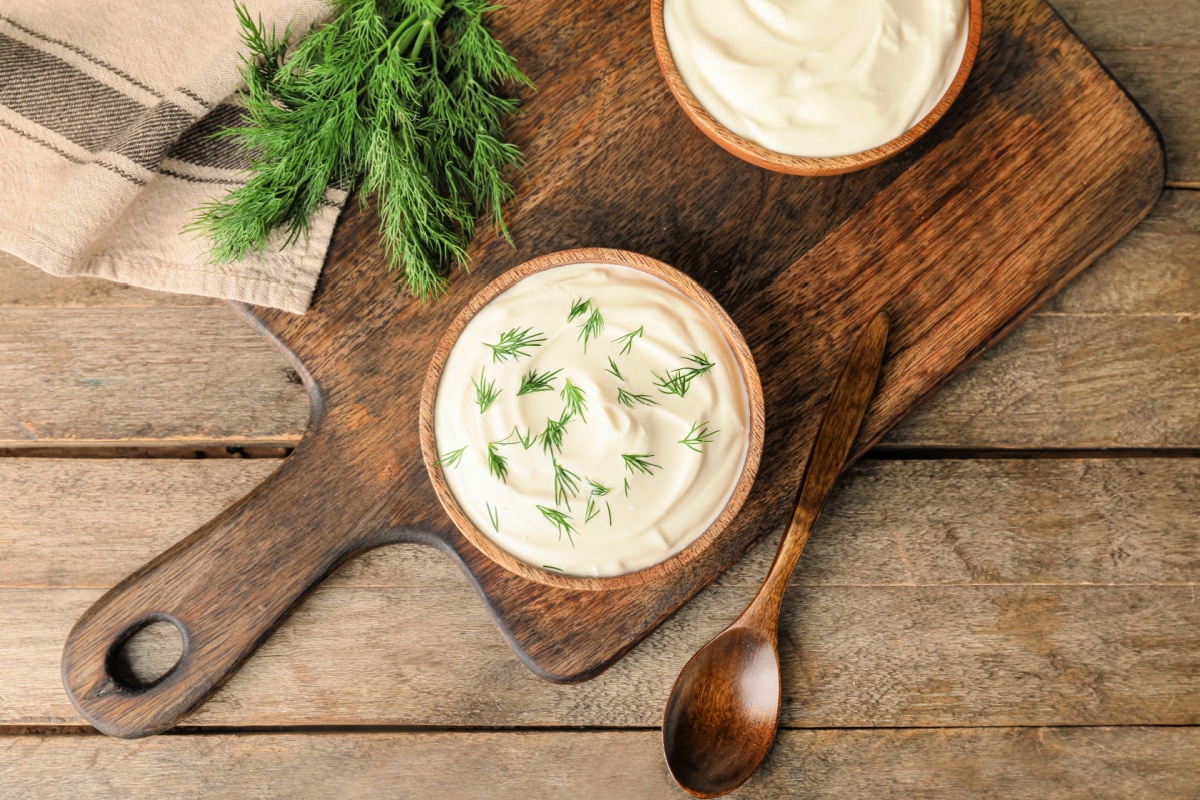 In a medium bowl, have your kids whisk together 1/2 cup sour cream or plain Greek yogurt and 1/2 tablespoon dried dill weed, then season with salt and pepper to taste.