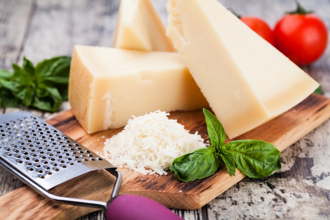 - Parmigiano Reggiano is a grana-type cheese with a granular texture, perfect for grating. This type of Italian hard cheese is formed into large wheels with a light-golden rind. It is then aged for at least 12 months.