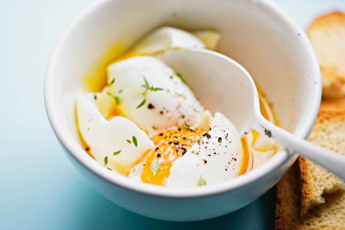 - The eggs are usually served with toast on the side, or the toast can be torn into pieces and added to the cup with the eggs, absorbing the yolk. Guggy eggs are often made for children for breakfast, but adults also eat them.