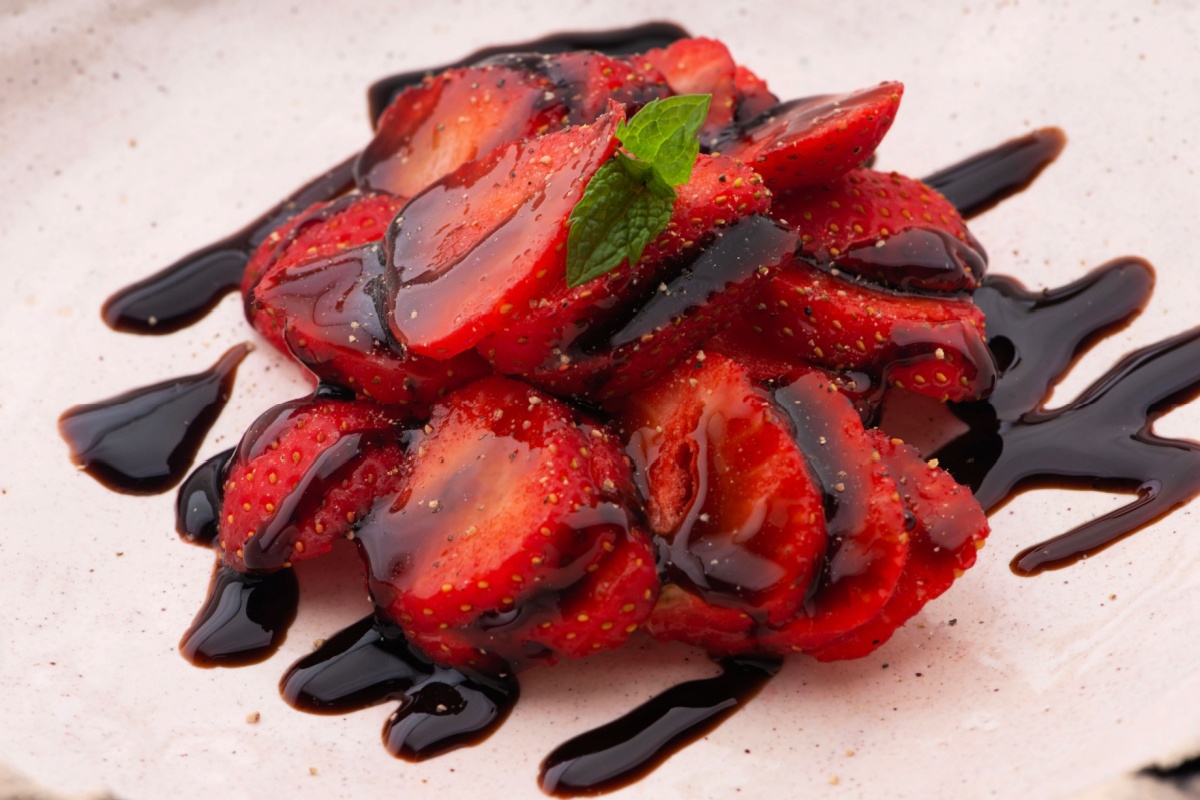 - Drizzling balsamic vinegar over macerated (softened) strawberries creates a light dessert with a mix of fruitiness, sweetness, and slight tartness. The vinegar enhances the flavor of the strawberries.
