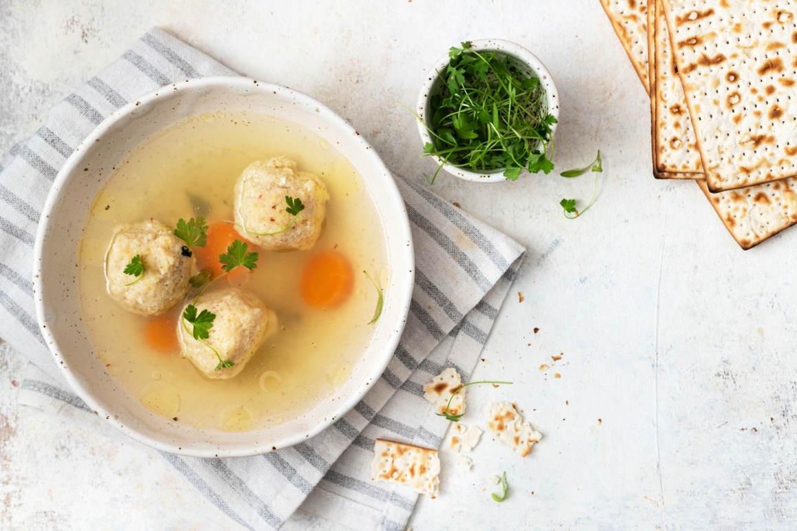 Matzo (or matzah) balls are attributed to Ashkenazi Jews living in Central Europe in the 19th century. The soup dumplings were based on "knödel," made with bread or potato, eggs, and flour. However, to make matzo balls, they used surplus matzo meal or the leftover crumbs from the Passover matzo (unleavened bread). Other ingredients include chicken broth, chicken fat, eggs, parsley, salt, and other seasonings.