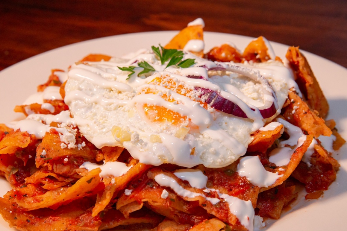 Add selected toppings to your chilaquiles. "Comer bien mis amigos" or "Eat well my friends" in Spanish!