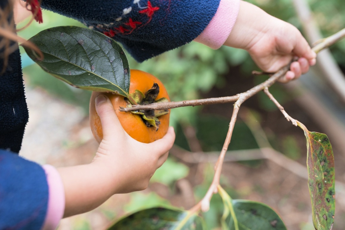 Have your children wash 2 persimmons and 1 apple. There's no need to peel the fruit (extra nutrition and fiber is in the skin of the fruit!). Have kids core and roughly chop or grate the fruit, and add it to your blender (or pitcher with use of an immersion blender).