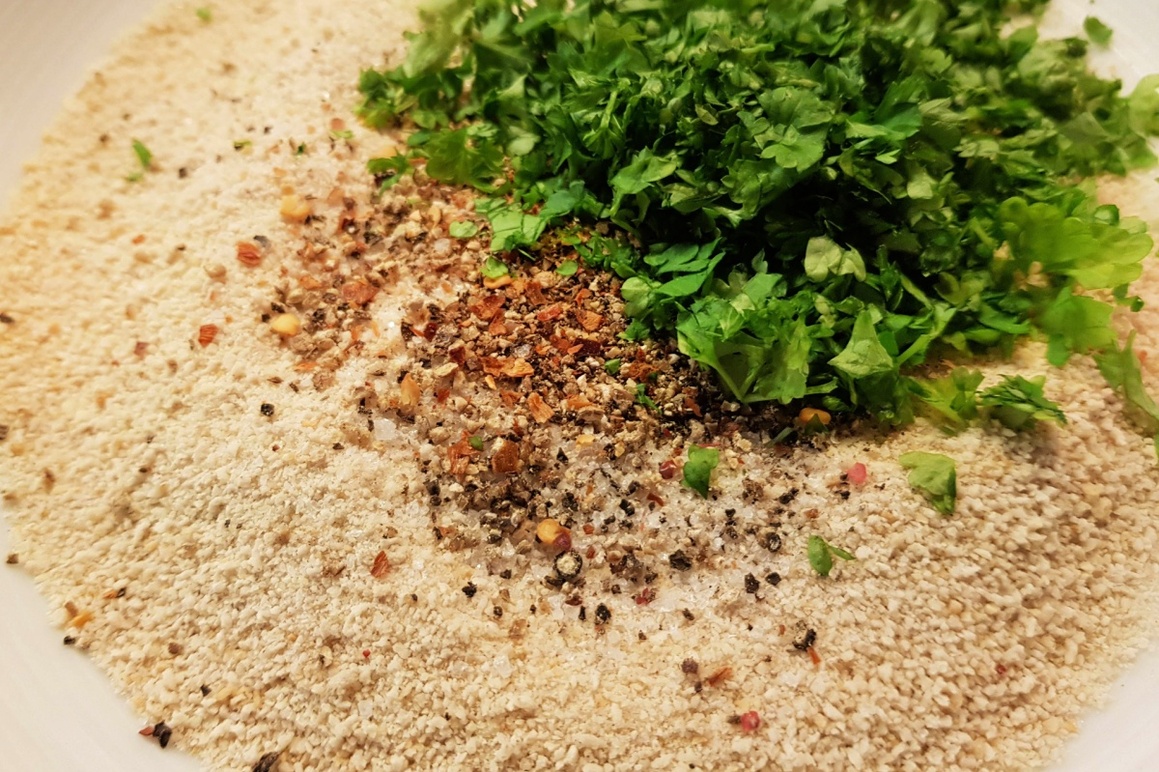 - Italian-style breadcrumbs, also called seasoned breadcrumbs, are dried plain breadcrumbs seasoned with herbs, like dried parsley, basil, or oregano. They may include salt, garlic powder, onion powder, paprika, and other dried spices.