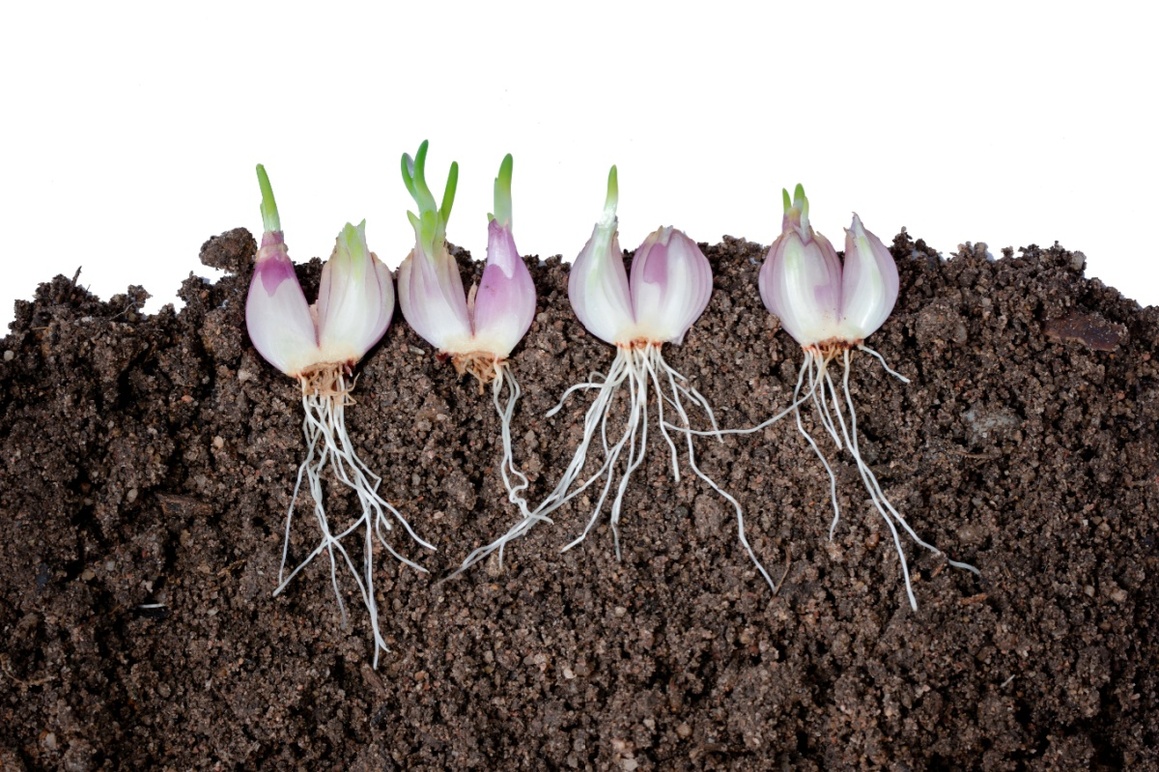 - Shallots grow in the ground from planted bulbs, sets of bulbs, or seeds. Thin, hollow edible green leaves, similar to onions, grow out of the top of the bulb. Shallots have shallow root systems.